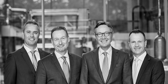 Od lewej: Franky De Grave (CFO), Christian Tomasch (COO), Dr. Detlev Krüger (Chairman und CEO), Reto Huber (COO)
